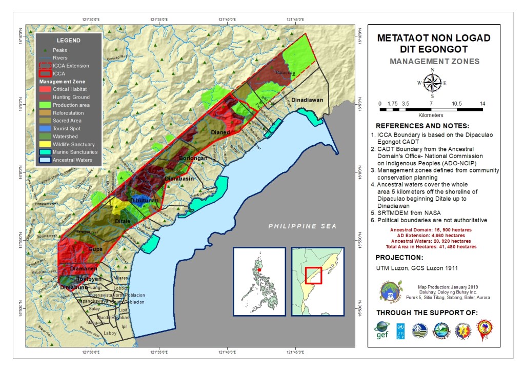 The Dipaculao-Egongot received the certificate for their Ancestral Domain in 2003 and with 15,900 a part of a larger Egongot title which extends across Aurora to Quirino and Nueva Vizcaya provinces with total of 139,000 hectares.